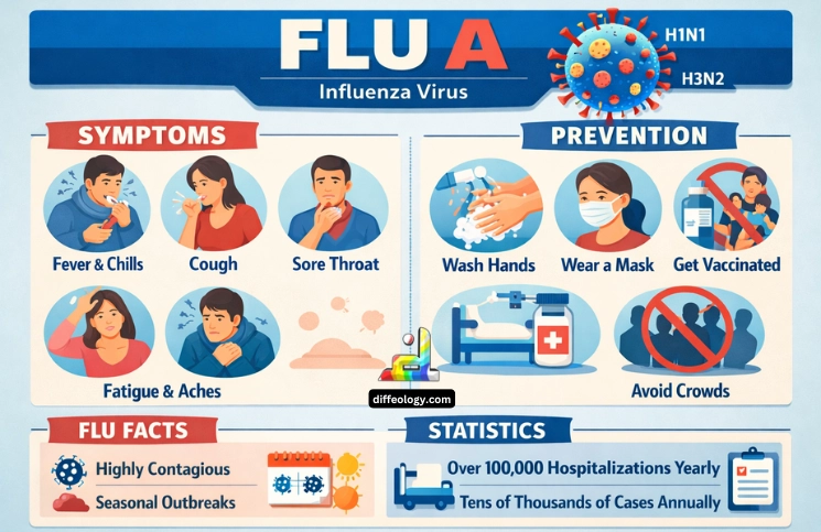 Flu A often causes stronger symptoms. Hospital visits rise by 40% during Flu A seasons.
