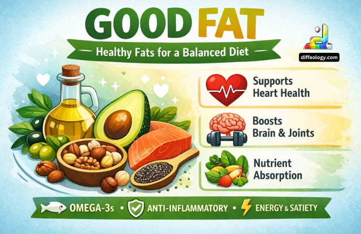 Understanding the difference between Good Fat and Harmful Fat helps people choose foods that support the heart, brain, and long-term health. Good fats provide energy and protect the body, while harmful fats increase health risks when eaten often. Making better fat choices supports a healthier and more active life.