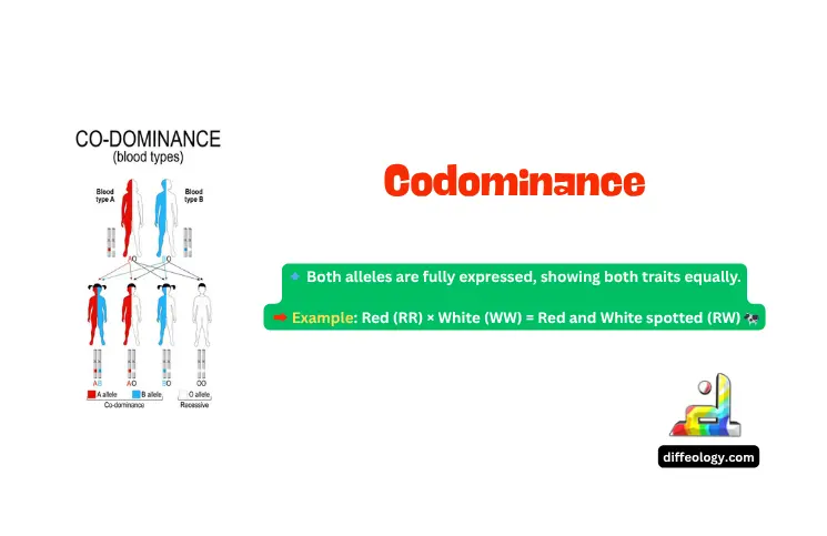Codominance happens when both alleles show up at the same time and neither hides the other. A clear human example is blood type AB, where a person has both A and B antigens on their red blood cells. Another example is roan cattle that have red and white hair together. When you look at a codominant trait, you can see parts of both parentsโ traits at once.