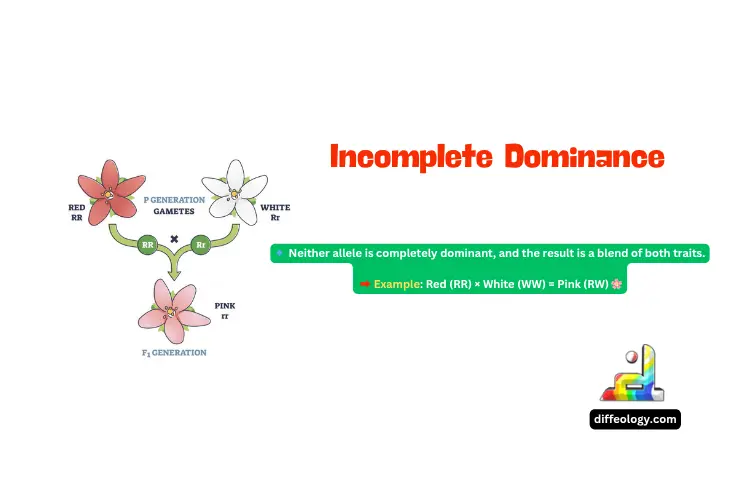 The main difference is simple: incomplete dominance makes a new, middle look in the offspring, while codominance shows both parent looks together. If one parent is red and the other is white, incomplete dominance often gives pink. If the pattern is codominance, the offspring might show red patches and white patches or both markers at once.