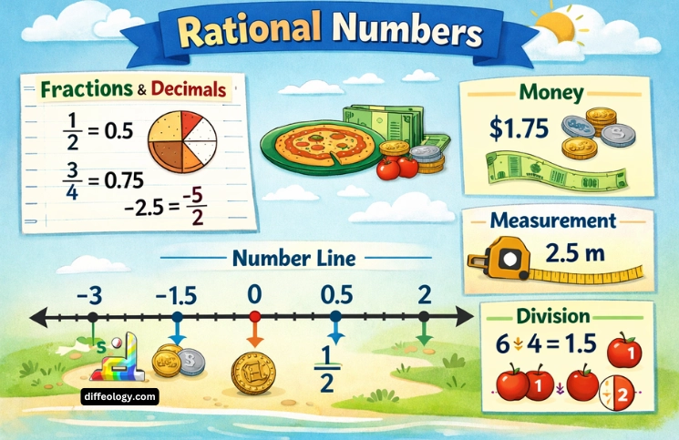 The difference between rational and irrational numbers is simple. In mathematics, t is a core idea that enables us to arrange integers into two obvious categories. A rational number is one you can express as p/q, where q is not 0 and p and q are both whole numbers. A sensible decimal either terminates, as in 0.5, or repeats, as in 0.333…. A number that is irrational cannot be expressed as p/q. Like π which is about 3.14159 and √2 which is approximately 1.41421356, its decimal never repeats and goes on eternally.